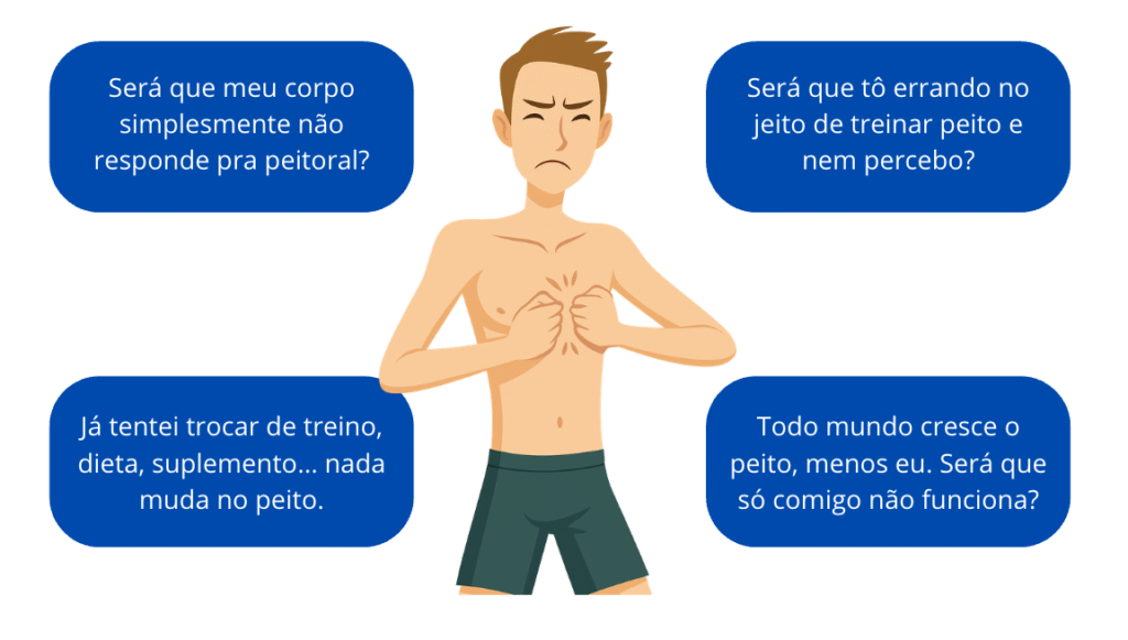 Você vai entender como progredir com peso e estímulo semana a semana, pra seu peito continuar crescendo sem travar — mesmo depois de anos de treino.